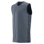 100% polyester wicking knit * 100% polyester printed wicking knit side panel * Wicks moisture away from the body * Pad print label * Self-fabric V-neck collar * Contrast color printed side panels * Double-needle hemmed armholes and bottom * Conforms to NFHS regulations