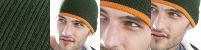 Stylish knit cap with contrasting stripe at bottom.