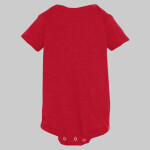 60% combed ringspun cotton/40% polyester vintage heathered fine jersey • 4.5-oz. • Flatlock seams • Double-needle ribbed binding on neck, shoulders, sleeves and leg opening with EasyTearTM label • Reinforced three snap closure • Sizes: 6-24 months, see colors