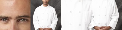 0413 Button Chef Coat with Thermometer Pocket