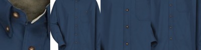 - Two button-thru, hex-style chest pockets with bartack reinforcement and pencil stall on left chest.