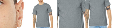 Retail fit Tear-away label Side seamed Shoulder taping Athletic Heather/Black Heather: 4.2-ounce, 90/10 Airlume combed and ring spun cotton/poly, 32 singles Heather CVC/Solid CVC Blend Colors: 52/48 Airlume combed and ring spun cotton/poly Prism: 99/1 Airlume combed and ring spun cotton/poly