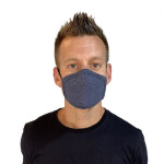 This three-ply, 100% cotton jersey face mask covers the wearer's nose and mouth. Elastic stretch binding ear loops help hold it in place.