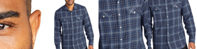 Casual and cool, this unique ombre plaid shirt has stretch and is perfect for a uniform look that is laid back, yet polished.