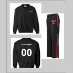 Heavyweight 100% polyester brushed tricot * Center front zipper * Raglan sleeves * Contrast color inserts on front with white accent piping * Front seam pockets * Elastic cuffs * Open bottom (Youth has side elastic) * Machine-washable *