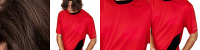 100% polyester wicking knit with color secure(r) technology that helps prevent dye migration * Wicks moisture * Ladies' fit * Tear away label * V-neck collar * Fully reversible * Each layer hemmed separately for embellishment