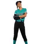 100% polyester double knit * Ladies' fit * Covered elastic waistband * Front left V-notch on bottom with two-color trim