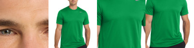 This Nike performance tee features sweat-wicking fabric to help keep you dry and comfortable. Durable rib knit crew neck. Heat transfer label for tag-free comfort. Rib knit cuffs. Double-needle stitching throughout. Contrast heat transfer Swoosh design trademark on left sleeve. Contrast heat transfer Dri-FIT logo at right hem. Made of 4.7-ounce, 60/40 cotton/poly Dri-FIT fabric.