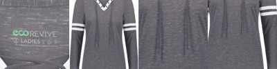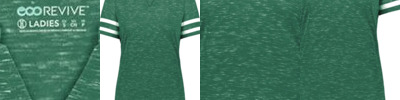 95/5 recycled polyester/cotton Moisture-management properties Lace up neck Set-in sleeves Tag-free label