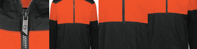 Micron™ polyester is a lightweight, wind, water-resistant fabric Three-piece hood with spandex binding Front zippered pockets Front zipper