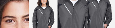 - Center front coil zipper with auto-lock slider and reflective rubble toggle