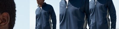 - 1x1 athletic rib knit collar, cuffs and waistband, with Spandex