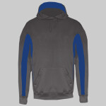 100% polyester fleece moisture management fabric • front and back contrast inserts with piping • front pouch pocket with two self-adhesive closure top pockets • poly rib cuffs and waistband • embroidered logo on left sleeve • Sizes: XS-4XL