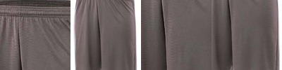 100% polyester wicking knit * 92% polyester/8% spandex pinhole mesh inserts * Wicks moisture away from the body * Full-cut * Covered elastic waistband with inside drawcord * Contrast color stripes on sides * 9-inch inseam * Double-needle hemmed bottom
