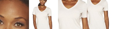 Arftul V-neck t-shirt in a lightweight blend of poly/cotton/rayon for a flattering fit.